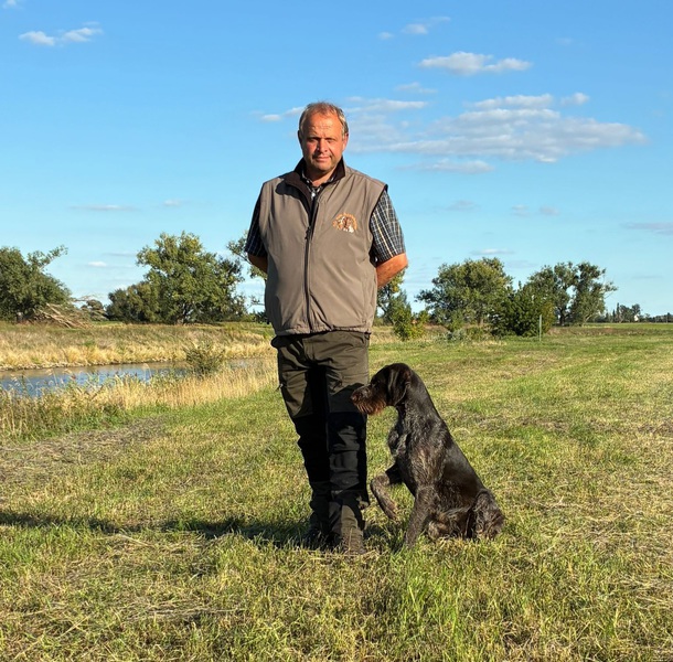 Alma IV v. d. Diamantenen Aue und Führer Heiko Valentin auf der 89. Hegewald - Zuchtprüfung in Iffezheim/Brühl - ein kräftiges Weidmannsheil zu 209 Arbeitspunkten und 217,5 Hegewaldpunkten